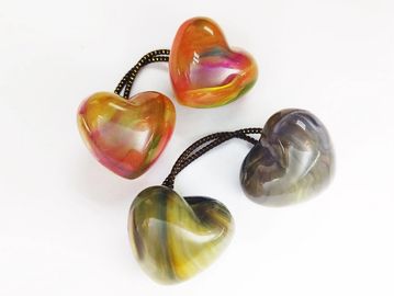 Ponytail holder with/out metal parts, medium size square beads at both ends in marble pattern